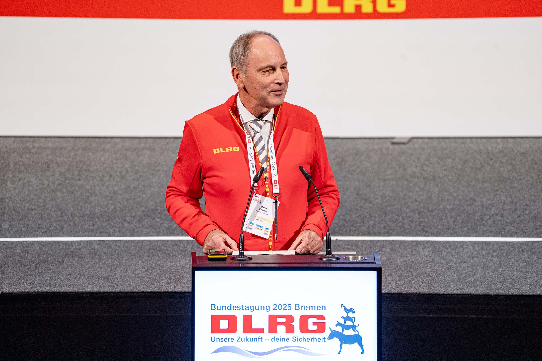 LV-Präsident Martin Reincke teilte mit allen Anwesenden seine Freude, „endlich mit der Straßenbahn zur Bundestagung fahren“ zu können. Zudem habe er den „Bremer Schlüssel“ auf der Bundestagungsfahne sehen wollen. Dies ist nun im Jahr des hundertjährigen Bestehens der DLRG Bremen gelungen: „Der Landesverband Bremen ist wahnsinnig stolz, im Jubiläumsjahr die Bundestagung in unserem Zwei-Städte-Staat zu Gast zu haben.“